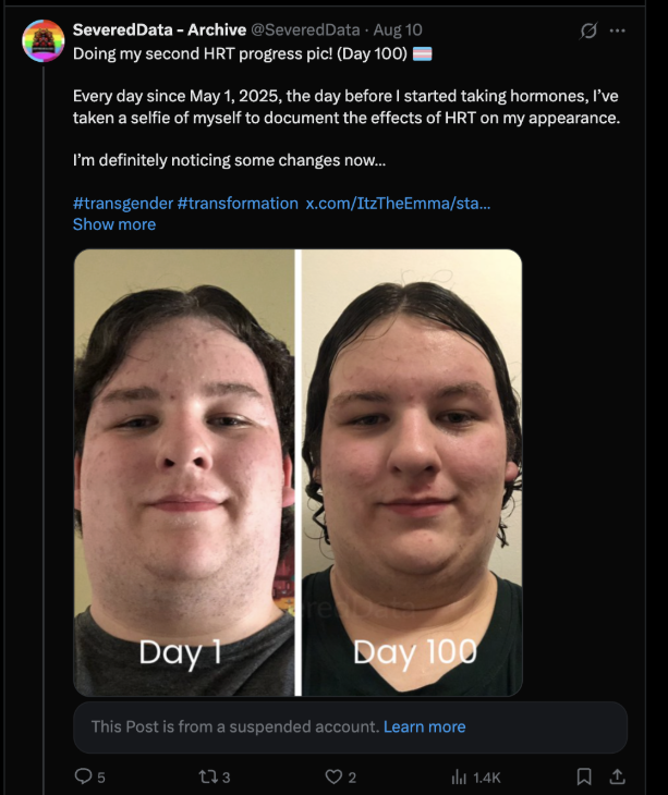 maybe if people didnt enable this creature's mental illness by giving in to its delusions it wouldnt have thrown itself off of a bridge when faced with the realisation that it will never be a real woman no matter how many sissy hypno videos and and linux tutorials it watches