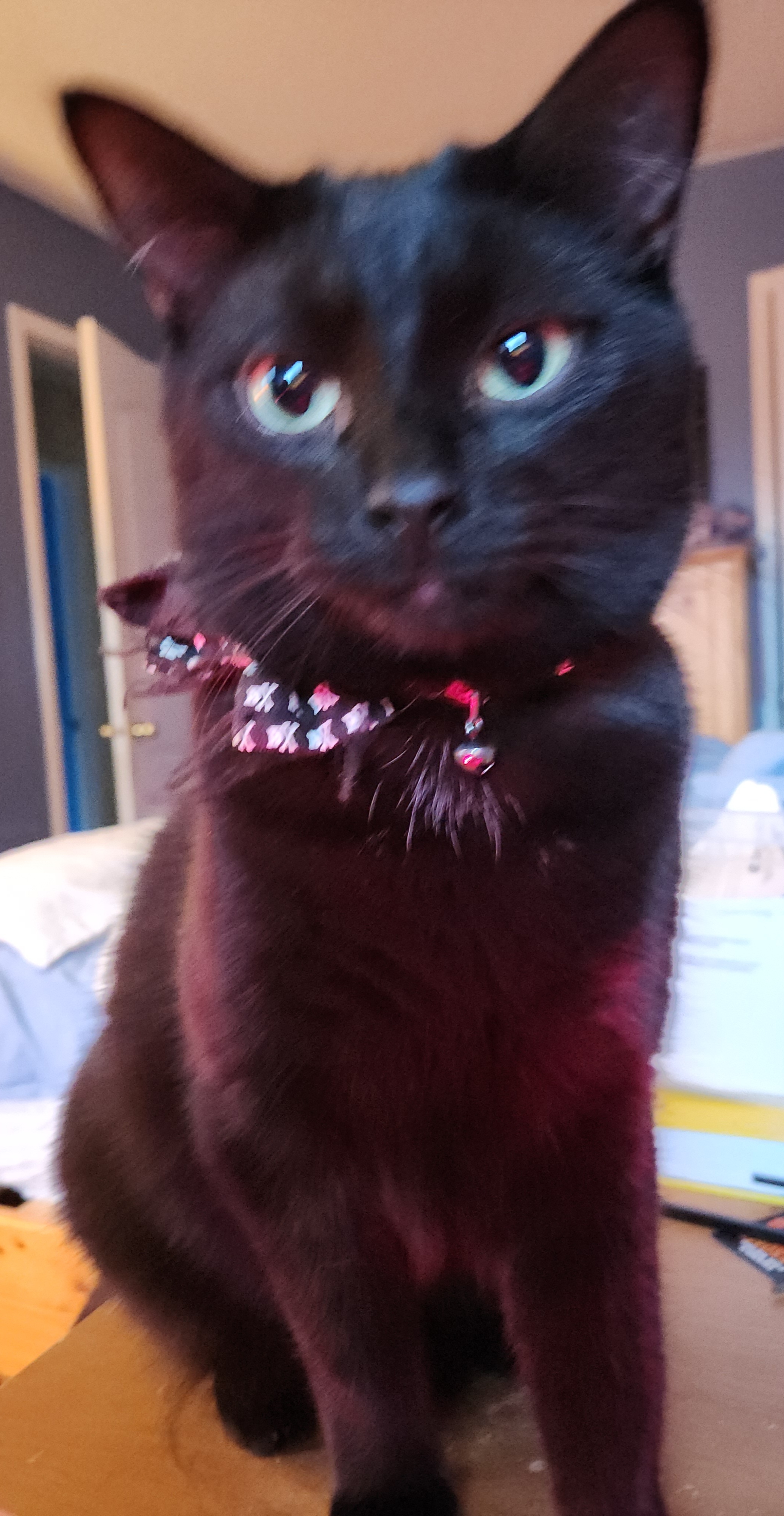 The one around the corner has green eyes