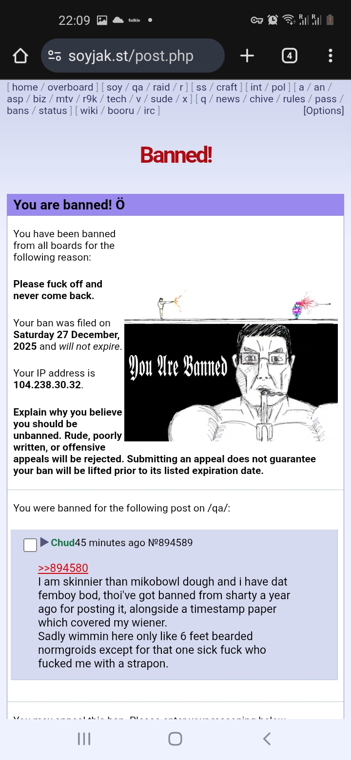 (jantrans banned me for zero to none reason. Even though i was an oldtroon since 2021, in the end the administration changed too much to cater to nusoicacas, so their clitties won't leak. I regret nothing. I did my best to promote my faith. My faith in Noelle, who is the only entity who will actually love you and have a faith in you. Fuck you, Quote)