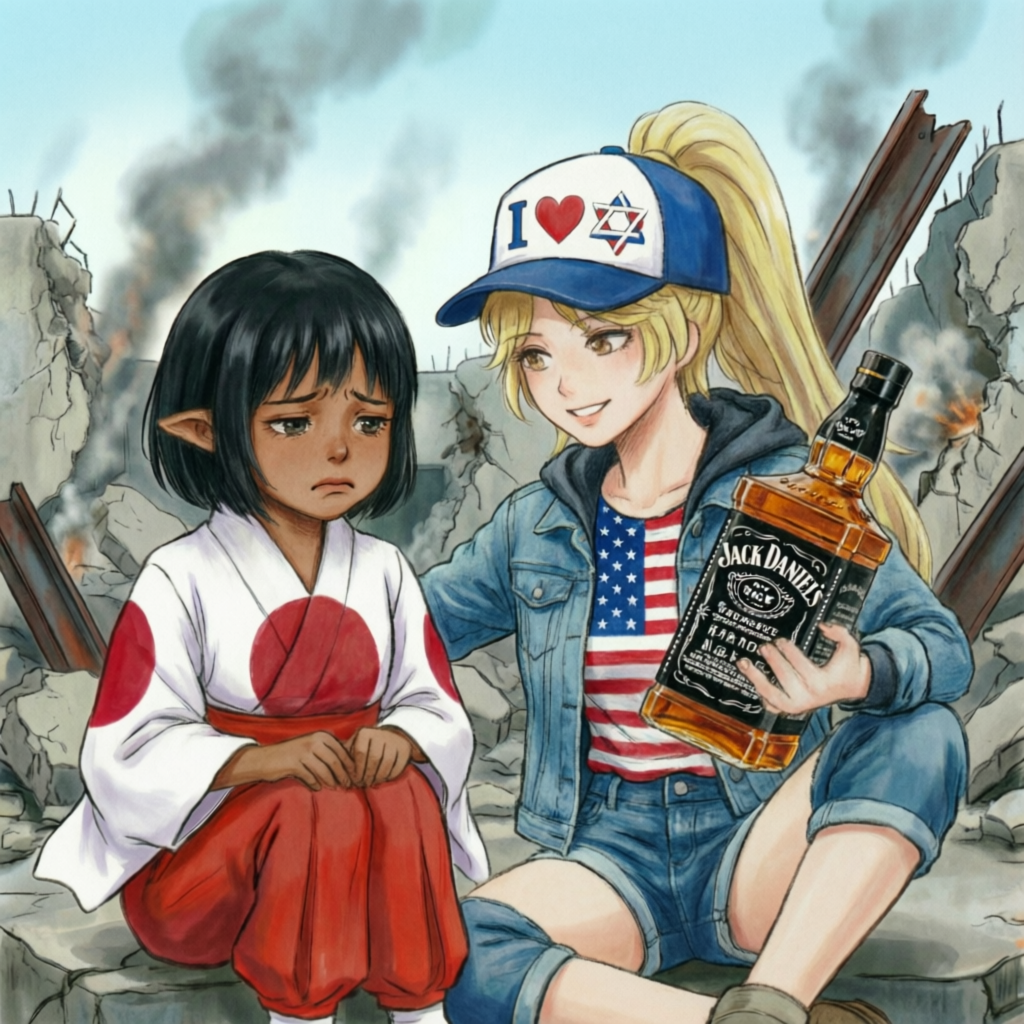 "Ты не сломаешь меня," прошептала Украина, но голос дрогнул, когда Россия схватила её за запястья, прижимая к бетону. "Я уже здесь, сестрёнка. Твоё сопротивление только заводит." С этими словами Россия расстегнула ширинку, освобождая свой твёрдый ствол—длинный, венозный, с набухшей головкой, капающей предэякулятом. Украина уставилась на него, смесью страха и запретного желания, её тело предательски отреагировало, соски затвердели под тканью.