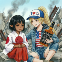 Кульминация настигла внезапно—Украина кончила первой, её соки хлынули, тело задрожало в оргазме, крича от смеси боли и удовольствия. Россия последовала за ней, изливаясь внутрь горячими струями, заполняя до краёв, пока семя не потекло по бёдрам. Они осели на пол, тяжело дыша, Россия всё ещё внутри, обнимая свою "завоёванную" территорию.
