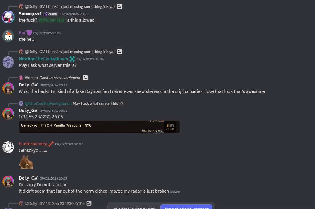 i assume this is some kind of communal tf2c plugin mod cord and somehow they found out or joined the server and saw the rape