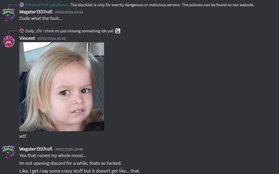 I looked at the cord and it's the most disgusting furry admins guffawing over this shit and saying it's for the best while shutting down dissent